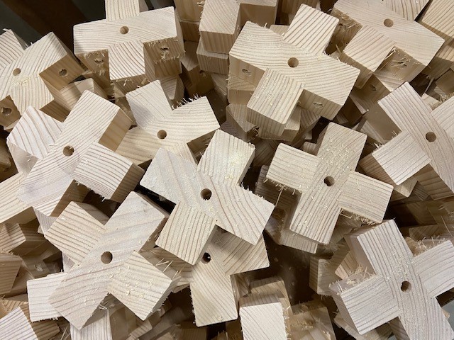 Connecteurs (en croix) CNC stables et de forme précise pour les montants d’étagères.