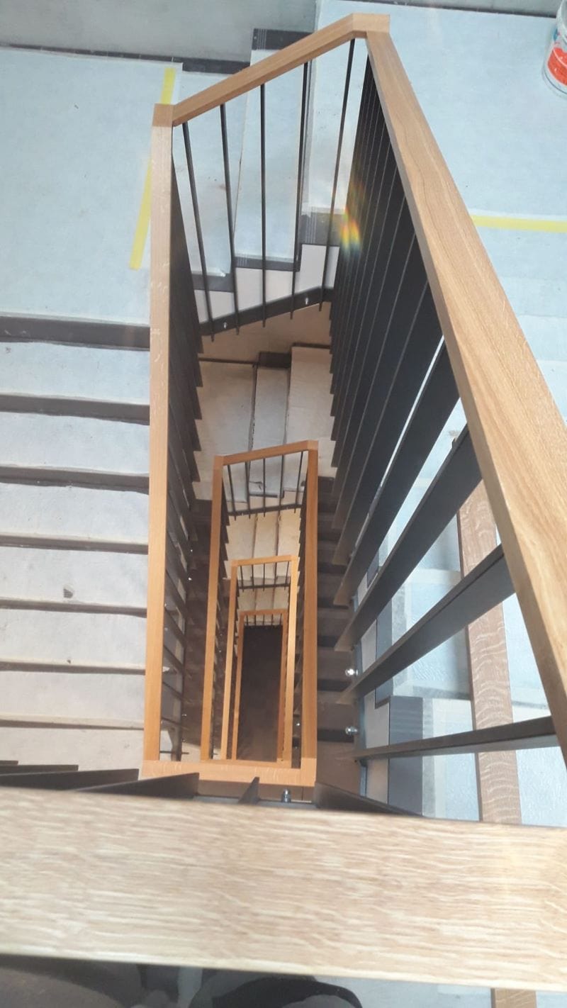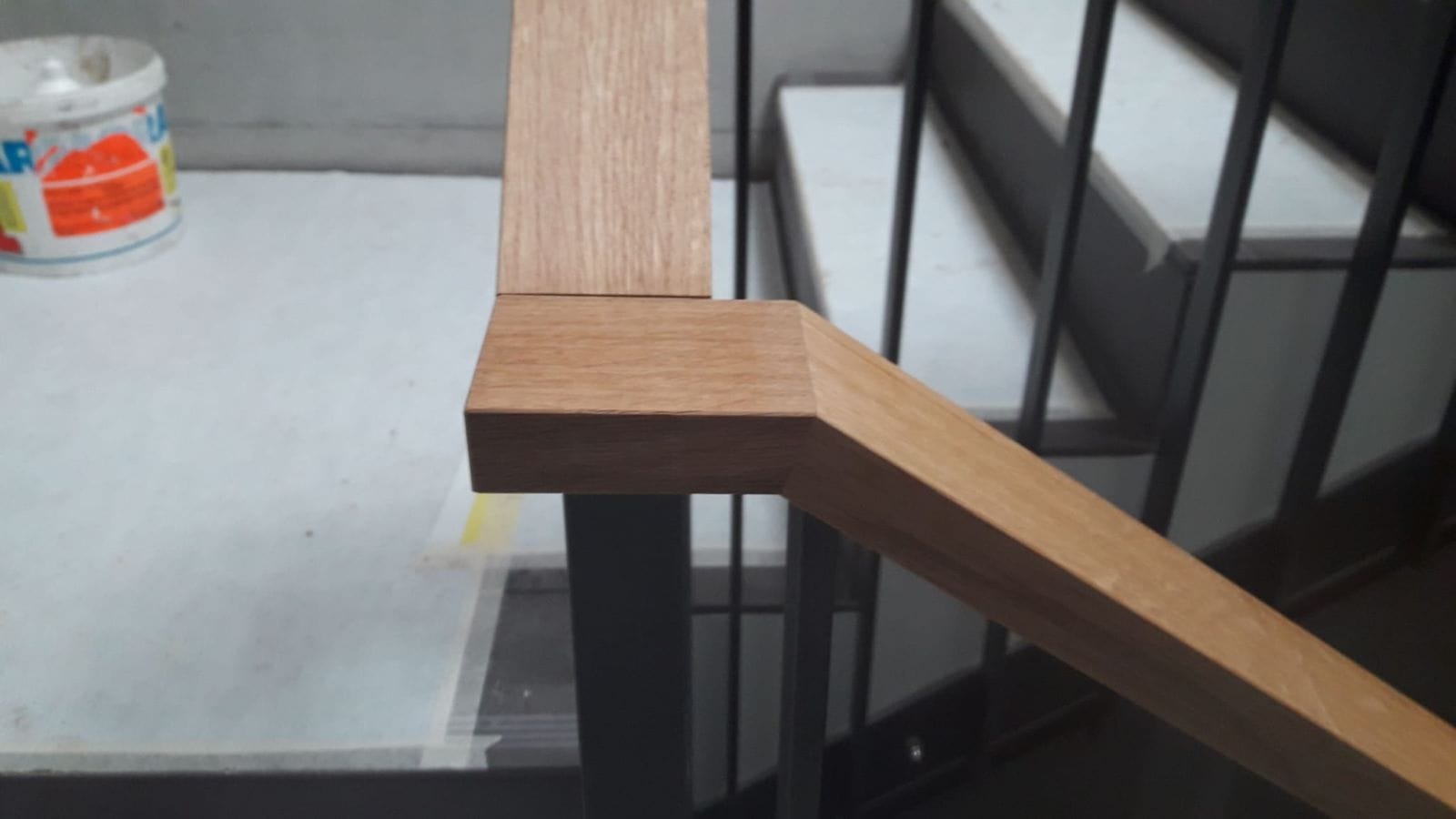 Mains courantes en bois de chêne avec des coins spéciaux : Bois et métal remarquablement combinés par la serrurerie + Metallbau von Arx AG, Riehen.