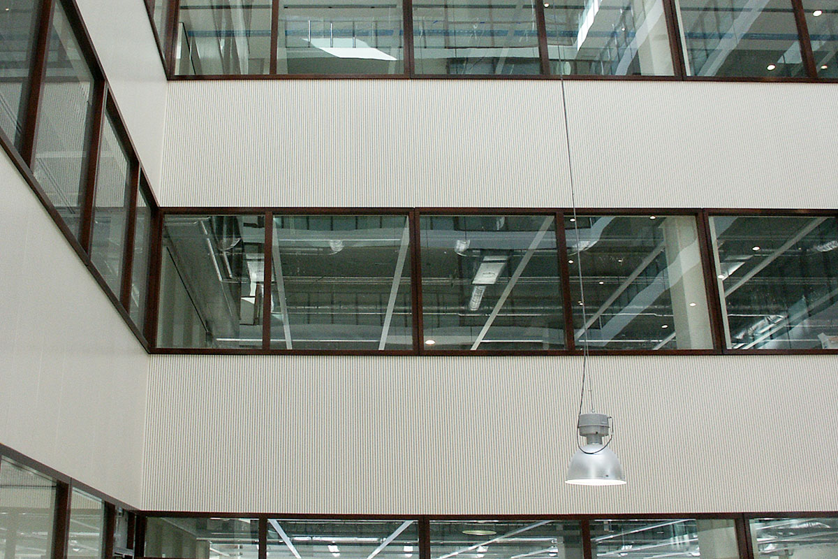 Bei Panellen mit grosser offener Fläche und feiner Rillung, vor allem bei Wänden, können durch die offenen Flächen Muster entstehen, die zum Teil als störend empfunden werden. In solchen Fällen empfehlen wir Ihnen unser neustes Produkt, das Akustipan® 14/2 VB, durch die neuartige rückseitige Lochung sind auf der Vorderseite keine Löcher sichtbar.