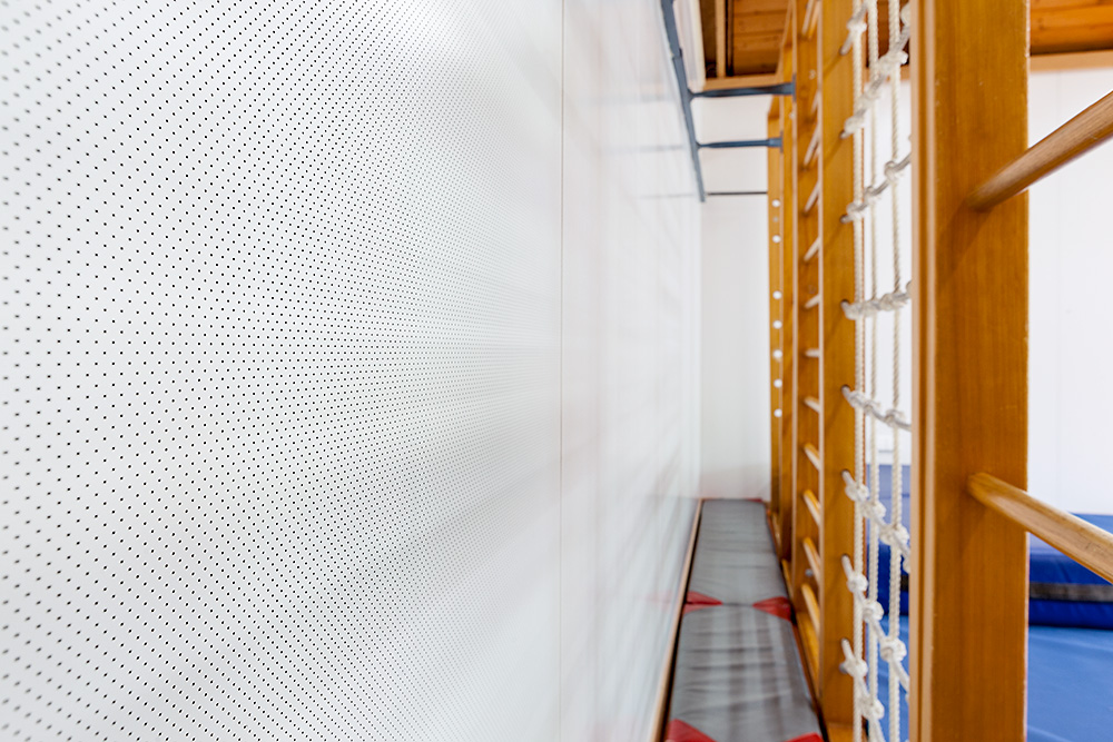 Die integrierte Dämmschicht der doppelseitigen akustischen Holzfaserdämmplatte erspart den manuellen Aufbau von mehrschichtigen Trennwänden. Durch direktes Bekanten entstehen optisch hochwertige akustische Trennwände und Bauteile für den Innenausbau. Inklusive planbarer Absorptionswerte.