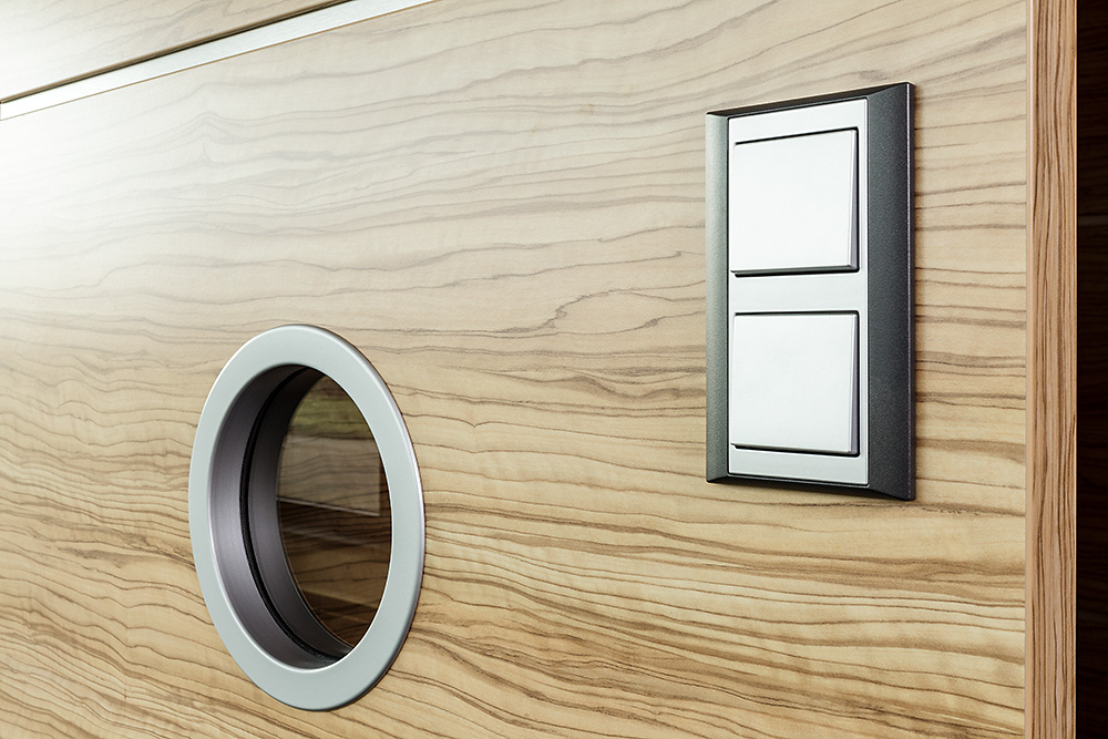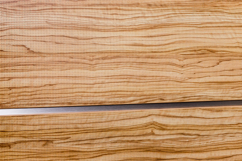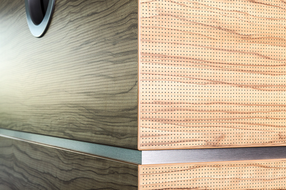 Die randlose Lochung der Platte ermöglicht passgenaue Zuschnitte für anspruchsvolle Geometrien und problemloses Integrieren von weiteren Bauteilen, Glasflächen und Türen, Schaltern, etc.